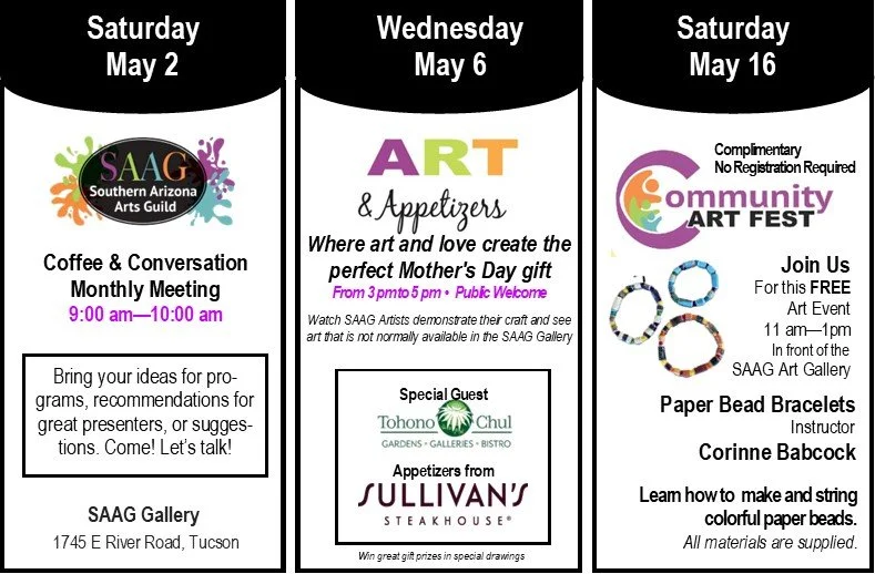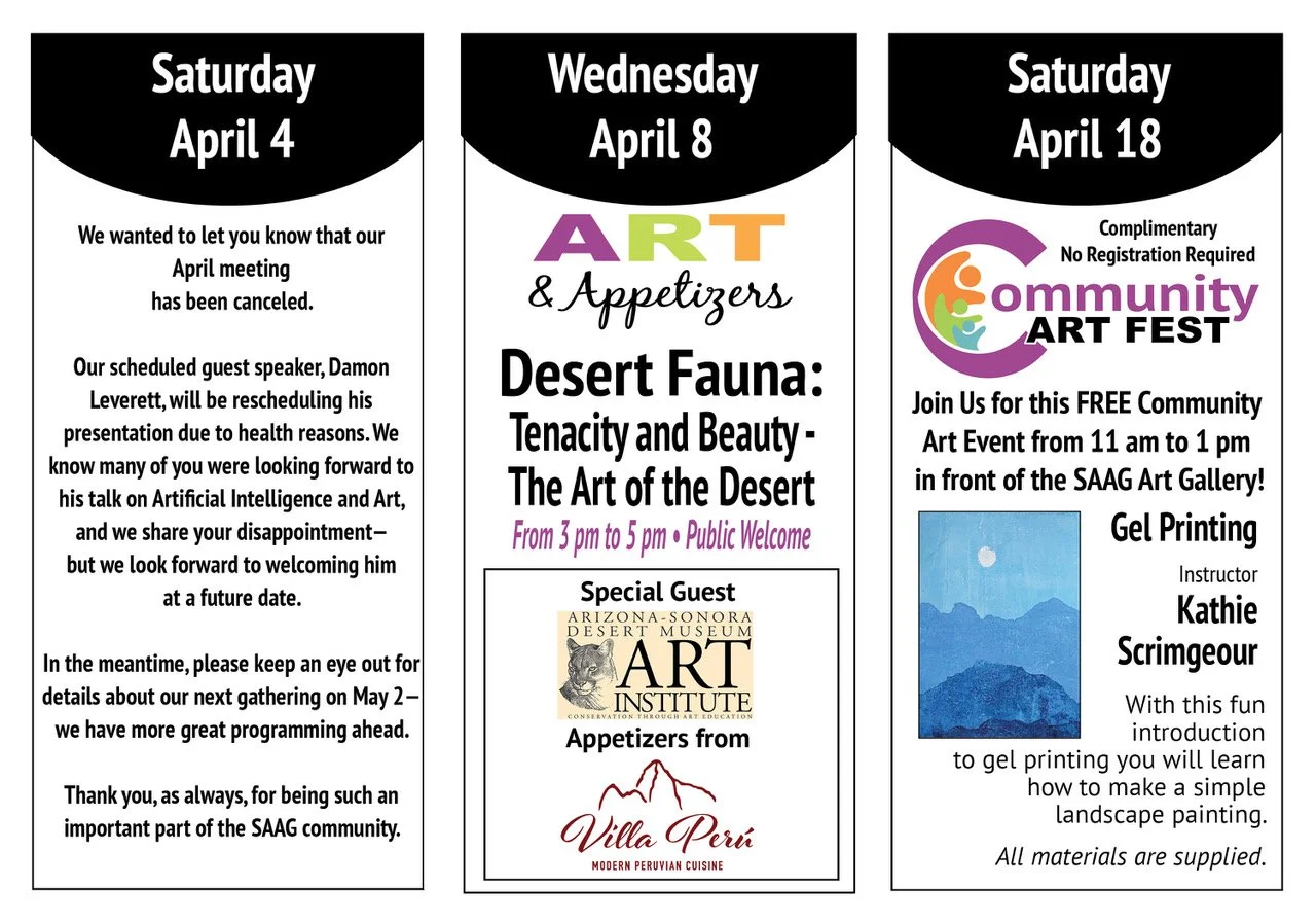 Now in our 23rd year!!! We hope you enjoy discovering all there is to learn about SAAG on these pages, from our events, classes, public exhibitions and more.