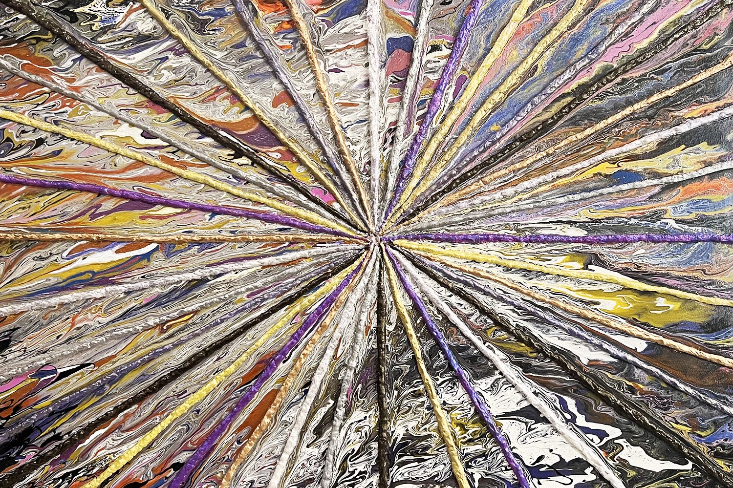 Acrylic painting, sculpture on canvas, airbrush, flow art, and casting, 2D and 3D