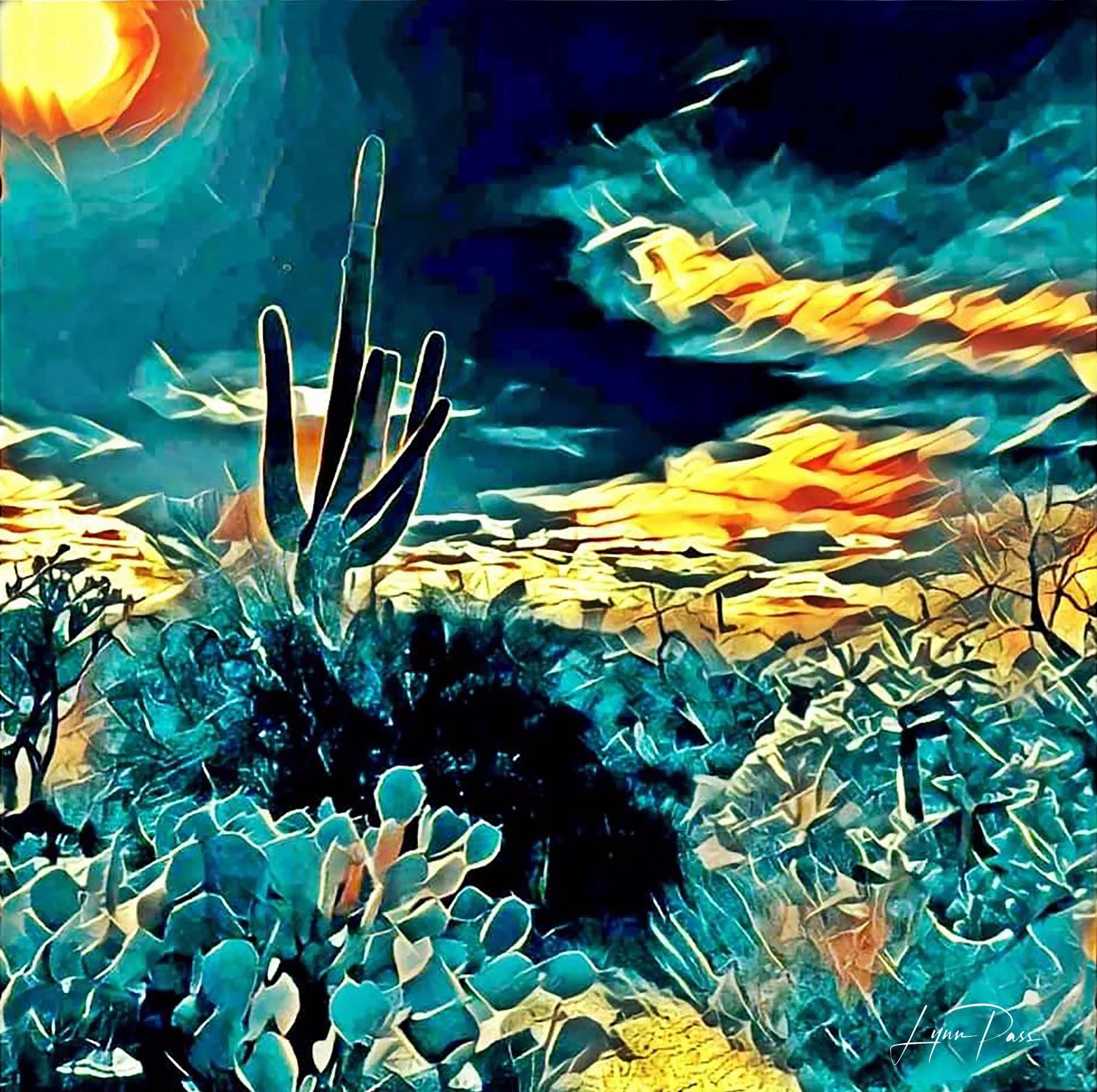 This image was inspired by my love for the desert flora and fauna as well as our incredibly colorful sunsets here. I hope my work helps others to appreciate the abundant beauty around us.