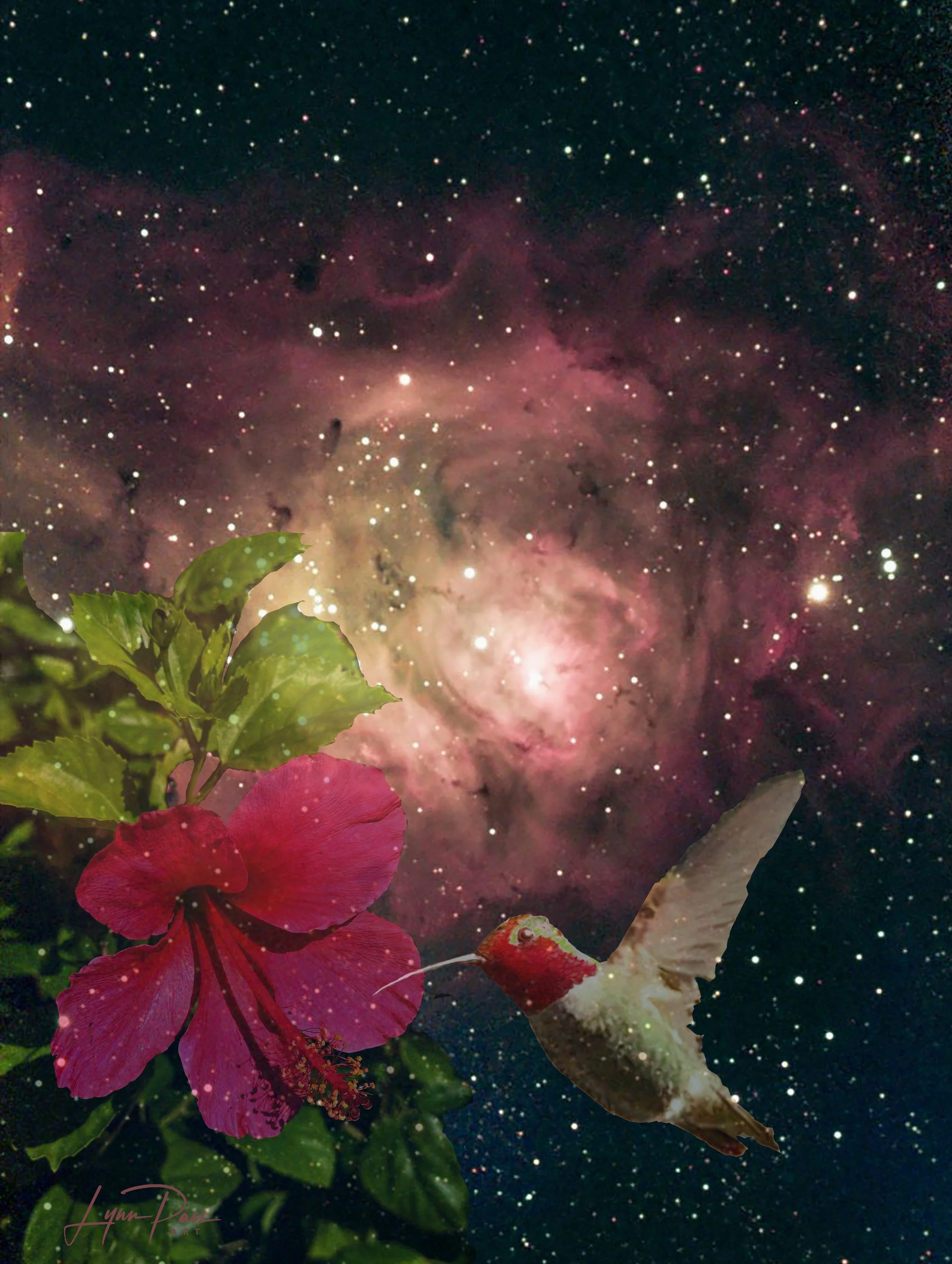 Lagoon Nebula with Hibiscus and Anna's Hummingbird Astro/Nature Image